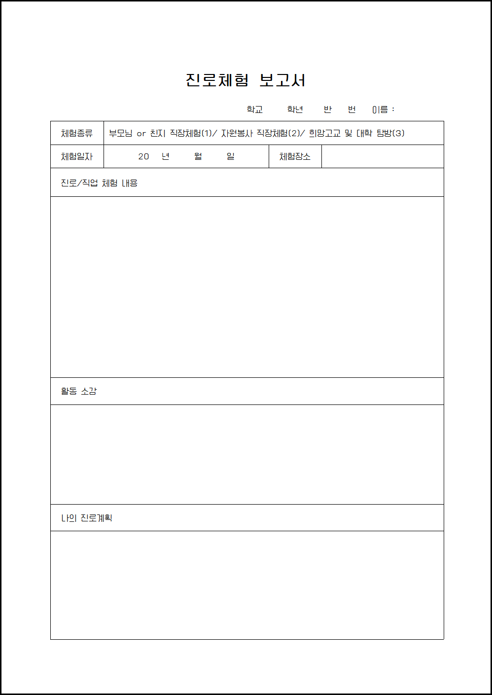 ⑴. 학생들이 진로체험을 통해 느끼고 생각한 바를 보고할 때 작성하는 문서